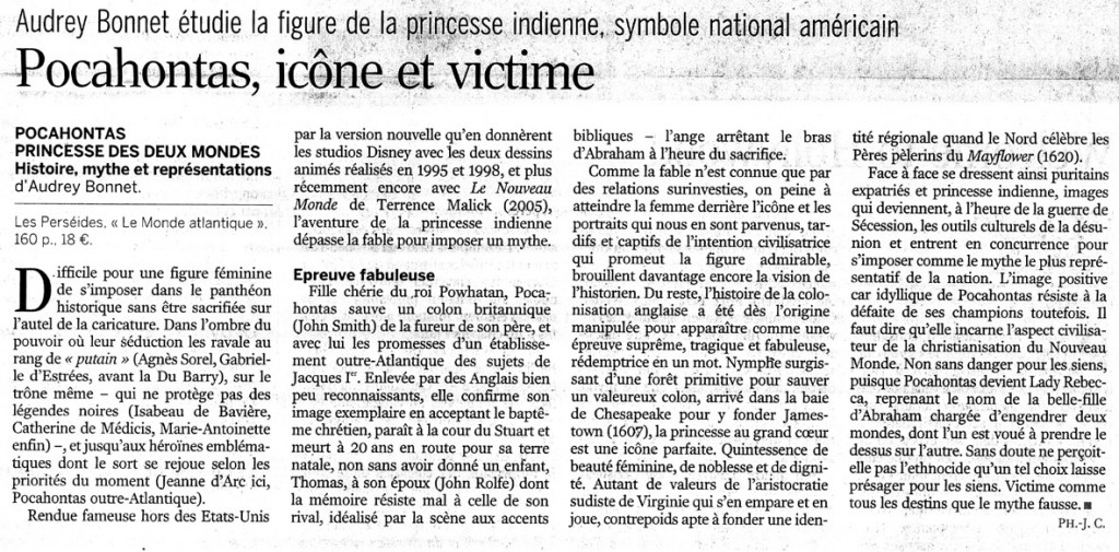 Audrey Bonnet, Pocahontas, princesse des deux mondes. Histoire, mythe et représentations.